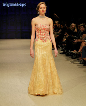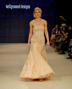 Well Groomed presented the creations of Dave Singh, and his collection evoked a sense of romanticism which was met well by the audience. The focus was on fusion gowns incorporating lace, sequins, crystals and intricate designs. We loved the last piece worn by model Jasmeen Johal, it was gorgeous!