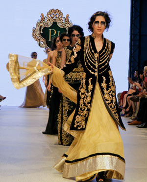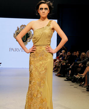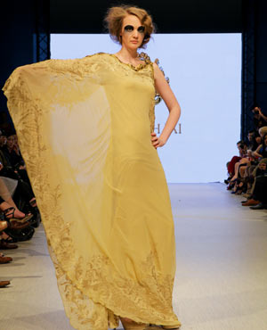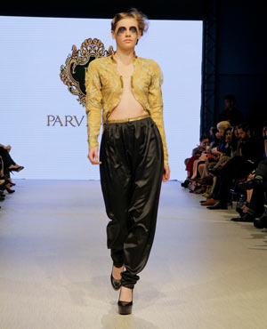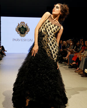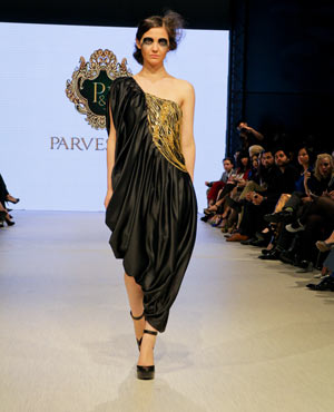 Parvesh & Jai, who are based in Delhi, try to evoke a strong female presence in their collections, and the focus for their Fall/Winter collection was ‘The Baroque Princess.” The collection was comprised of evening gowns, jump suits, bolero jackets and a-symmetrical dresses in shades of beige, black and gold showcasing the best of the Baroque art period from 1590 to 1725. These fashion forward pieces were simply stunning, and the embroidery in gold motifs exhibited attention to detail and craftsmanship at its finest!