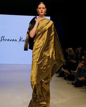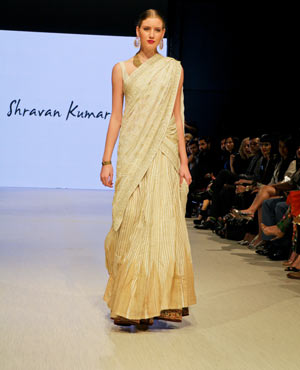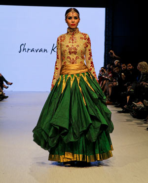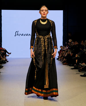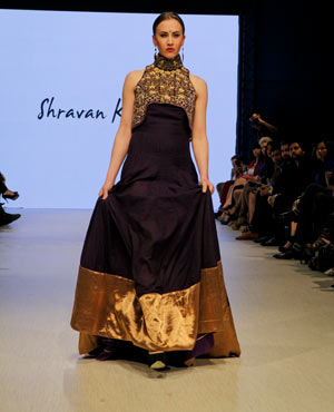 Concluding the evening was Shravan Kumar, who believes “fashion is a religion rather than a profession.” Based out of Hyderabad, Kumar strives to create high-end fashion with a conscious. His Fall/Winter collection was an ode to weaves and weavers, which took the audience through a tale of eight dynasties evoking a regal, majestic feel. Kumar’s show started off with a bold entrance, in which all of his models came out in a block formation down the runway – talk about grabbing the audience’s attention right from the start! Kumar’s pieces were rich and opulent, and you can only imagine the skill level that weavers have in order to create such visual masterpieces of art.