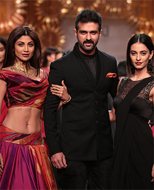 Shilpa Shetty dazzled the ramp as she supported her designer friend Tarun Tahiliani, who opened the Autumn-Winter edition of Wills Lifestyle India Fashion Week (WLIFW) here with his Indian heritage inspired collection